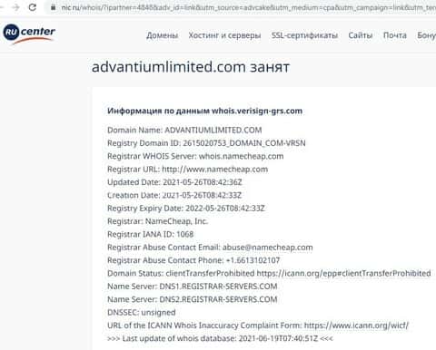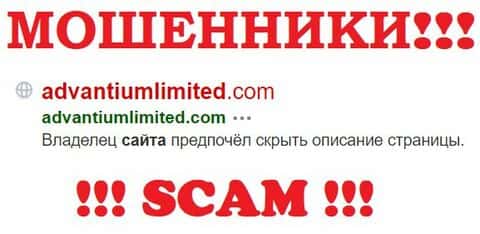 Информация о владельце шулерского доменного адреса advantiumlimited com отсутствует