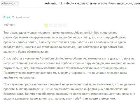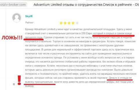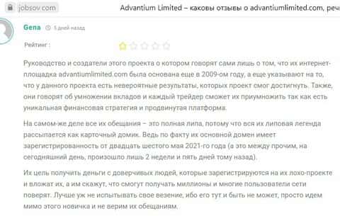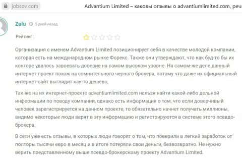 Отзывы опытных трейдеров весьма критичны по отношению к пронырам AdvantiumLimited