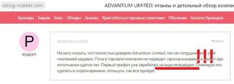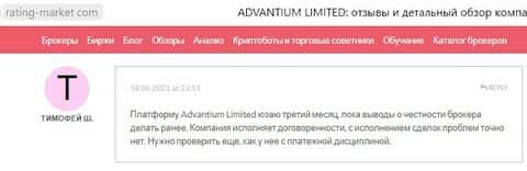 Мошенники Адвантиум Лимитед никогда не дадут вам вывести деньги - утверждает следующий пользователь.