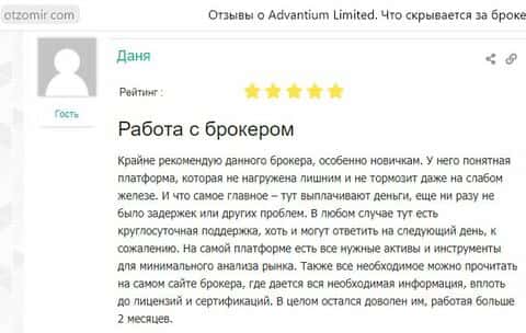 И этот пользователь явно перестарался в восхвалении проныр Адвантиум Лимитед, заверив, что без проблем работает с этим мутноброкером несколько месяцев.