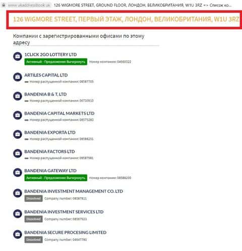Мало того, такого адреса с регистрацией каких-либо офисов в Англии просто нет.