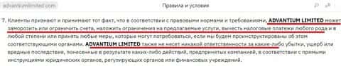 Кроме того, вымогатели Адвантиум Лимитед могут замораживать счета клиентов, требовать погасить различные платежи. И конечно же, отказываются от всякой ответственности за какие-либо убытки.