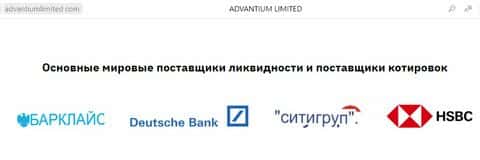 Своими партнерами и поставщиками котировок проныры Адвантиум Лимитед называют несколько компаний.