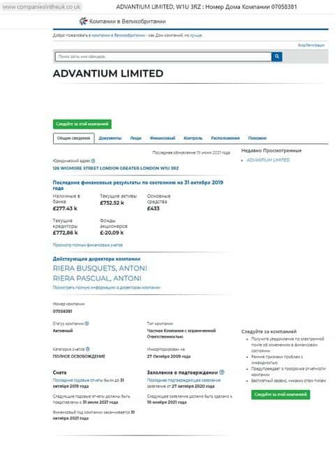 Мы проверили, действительно, такая компания существует. Лохоброкеры Адвантиум Лимитед "позаимствовали" документы уже действующей компании, чтобы побыстрее нахапать денег и слиться.
