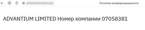 Отдельным пунктом у прощелыг Адвантиум Лимитед идет регистрационный номер компании.