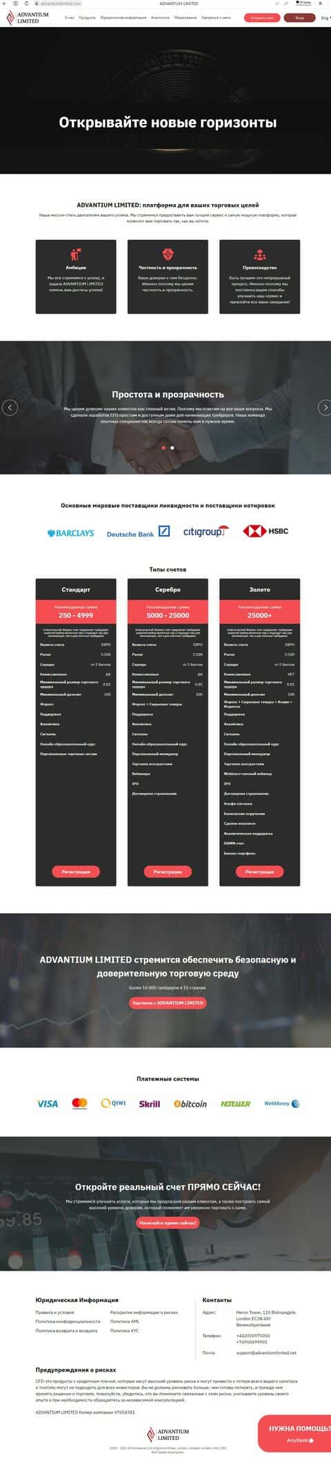 advantiumlimited com - официальный ресурс мутноброкеров AdvantiumLimited