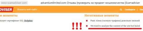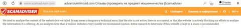 На скрине ниже, сделанного с сайта Scamadviser, написано "сайт активно блокирует наши усилия по анализу информации, которую он предлагает". Боятся шулеры Адвантиум Лимитед любой утечке информации о себе. Значит, есть что скрывать.