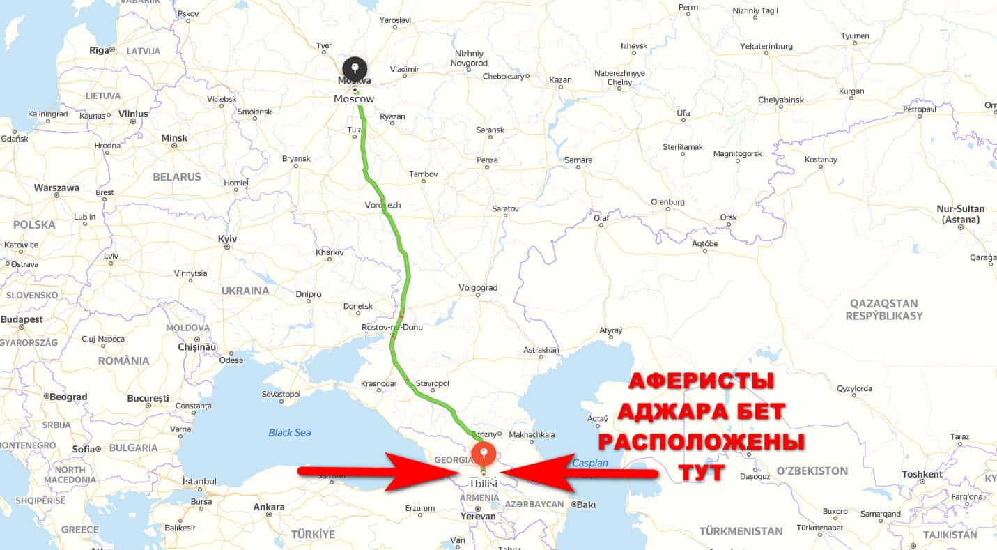 Мошенники из букмекерской конторы Аджара Бет не боятся показывать свое местоположение и их главный офис расположен в Грузии, что не так далеко от Москвы.