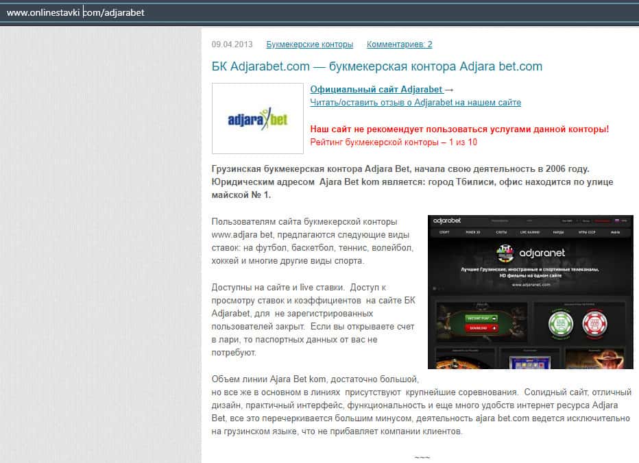 Обзоры букмекера AdjaraBet на других ресурсах