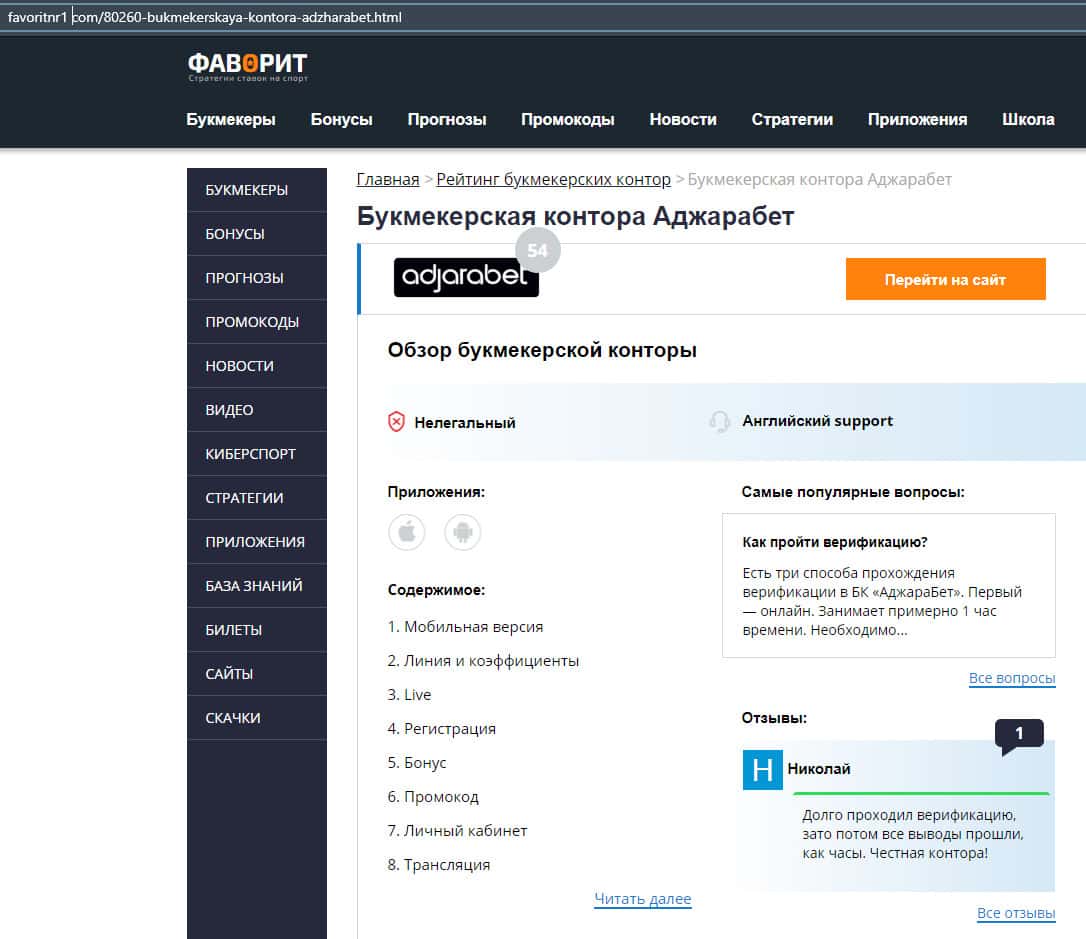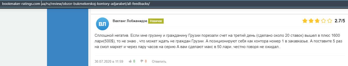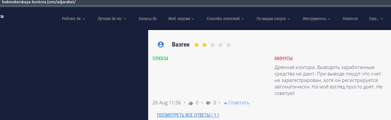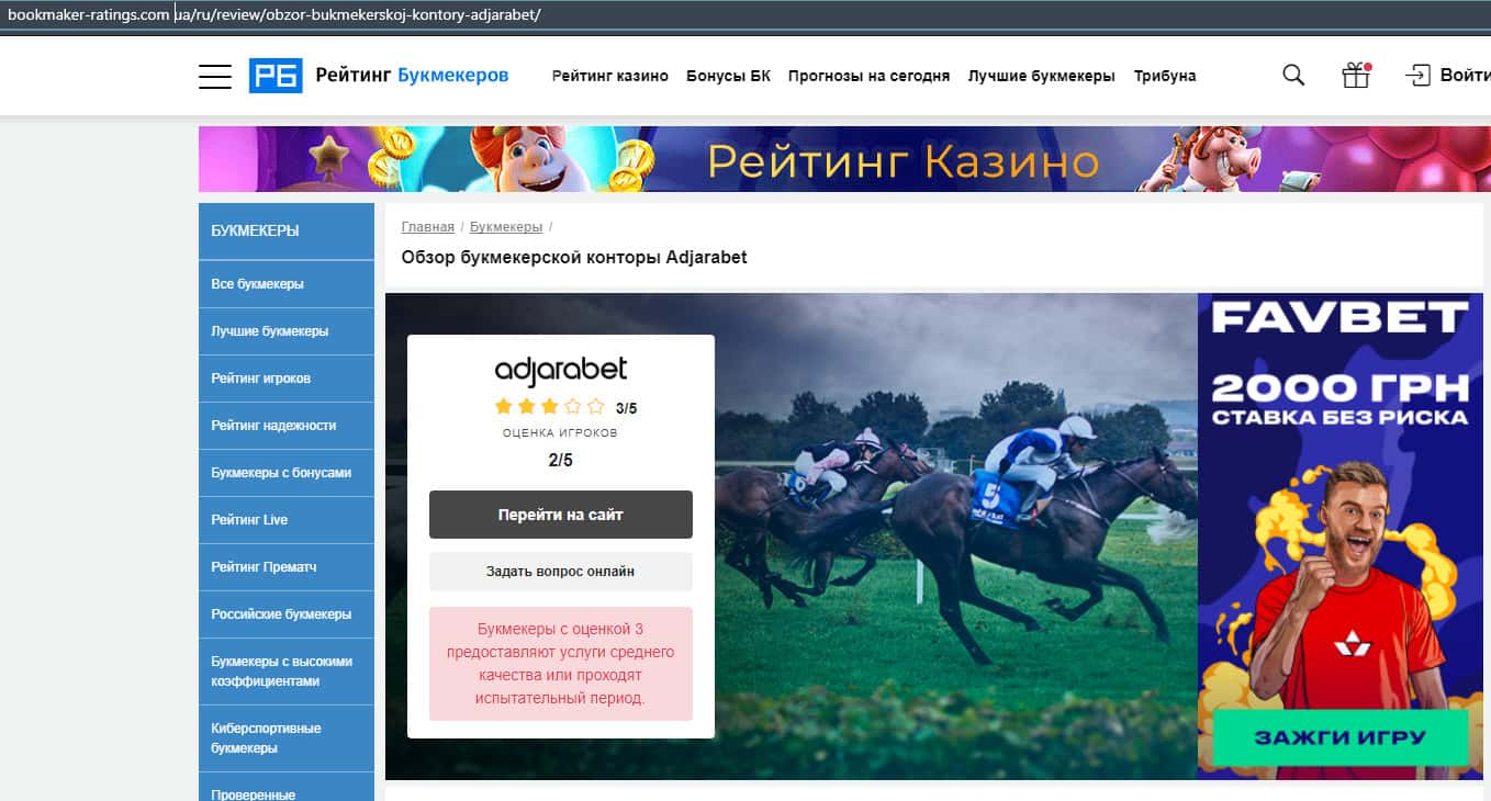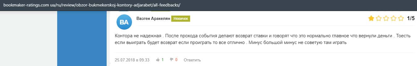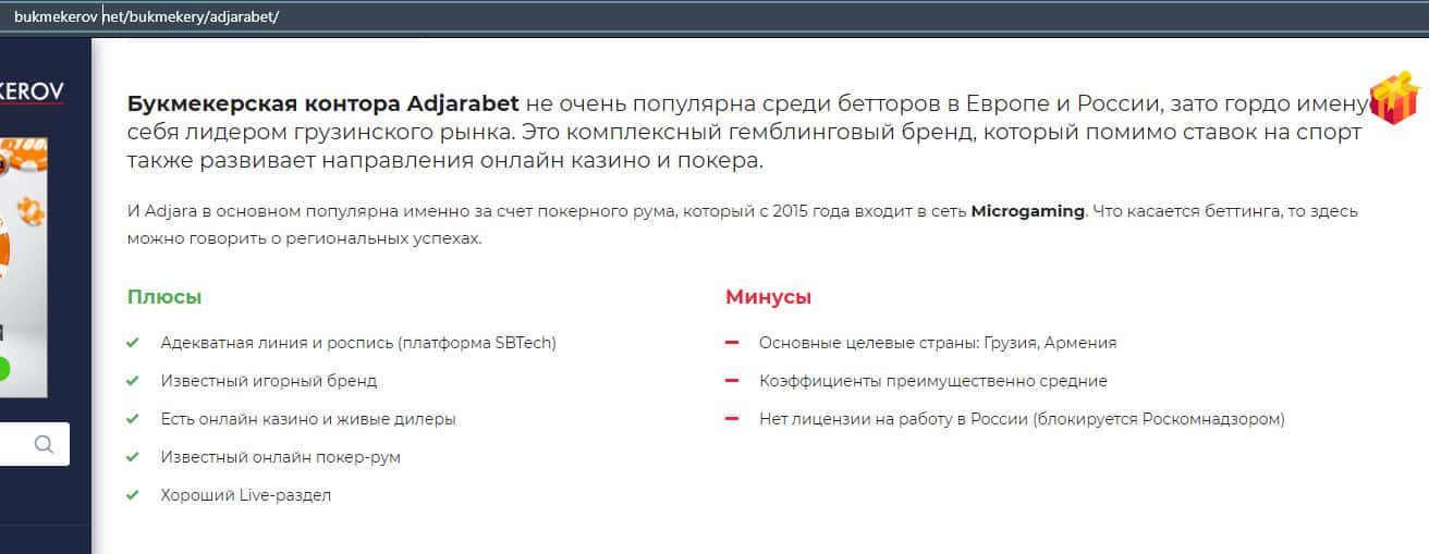 - Обзоры букмекера AdjaraBet на других ресурсах