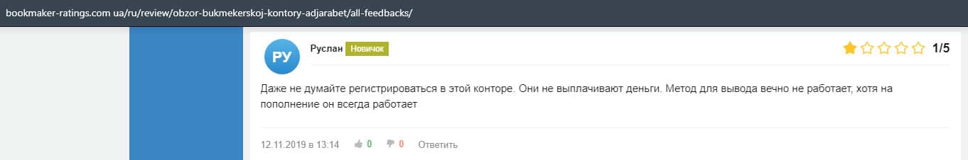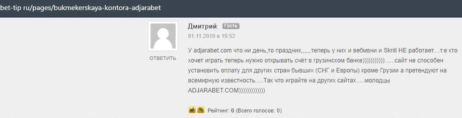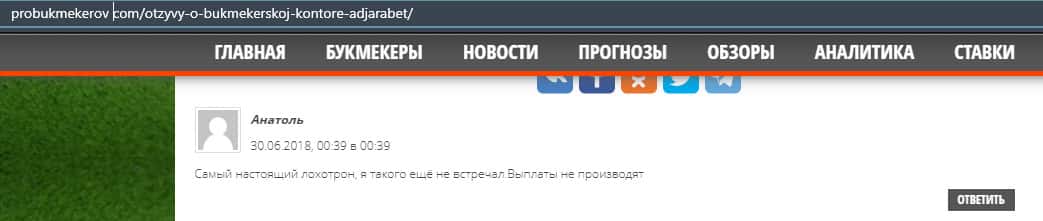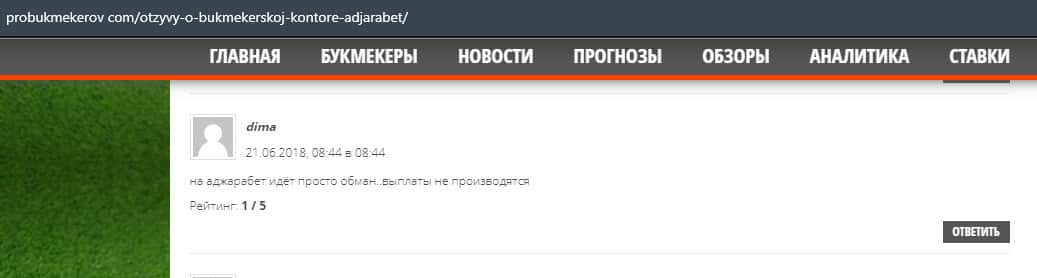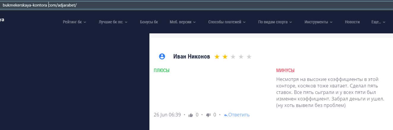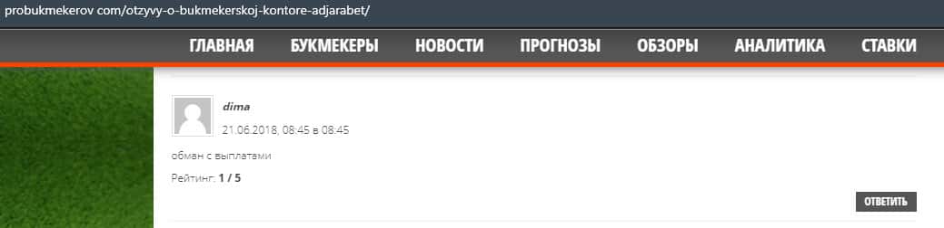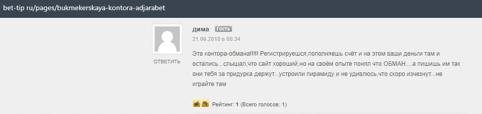 Еще один пользователь сети утверждает, что в конторе AdjaraBet обманывают, так как это видно из не выплат, которые так или иначе описываются в интернете.