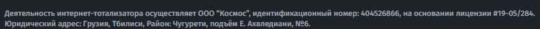 Как оказалось, лохотрон AdjaraBet работает под двумя юридическими лицами и первое из них это ООО "Космос" имеющее место регистрации в Грузии под номером 404526866.