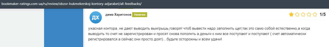 Еще один ресурс указывает на то, что они не рекомендуют связываться с псевдо-букмекерской конторой Аджара Бет, так как на это есть ряд негативных причин.