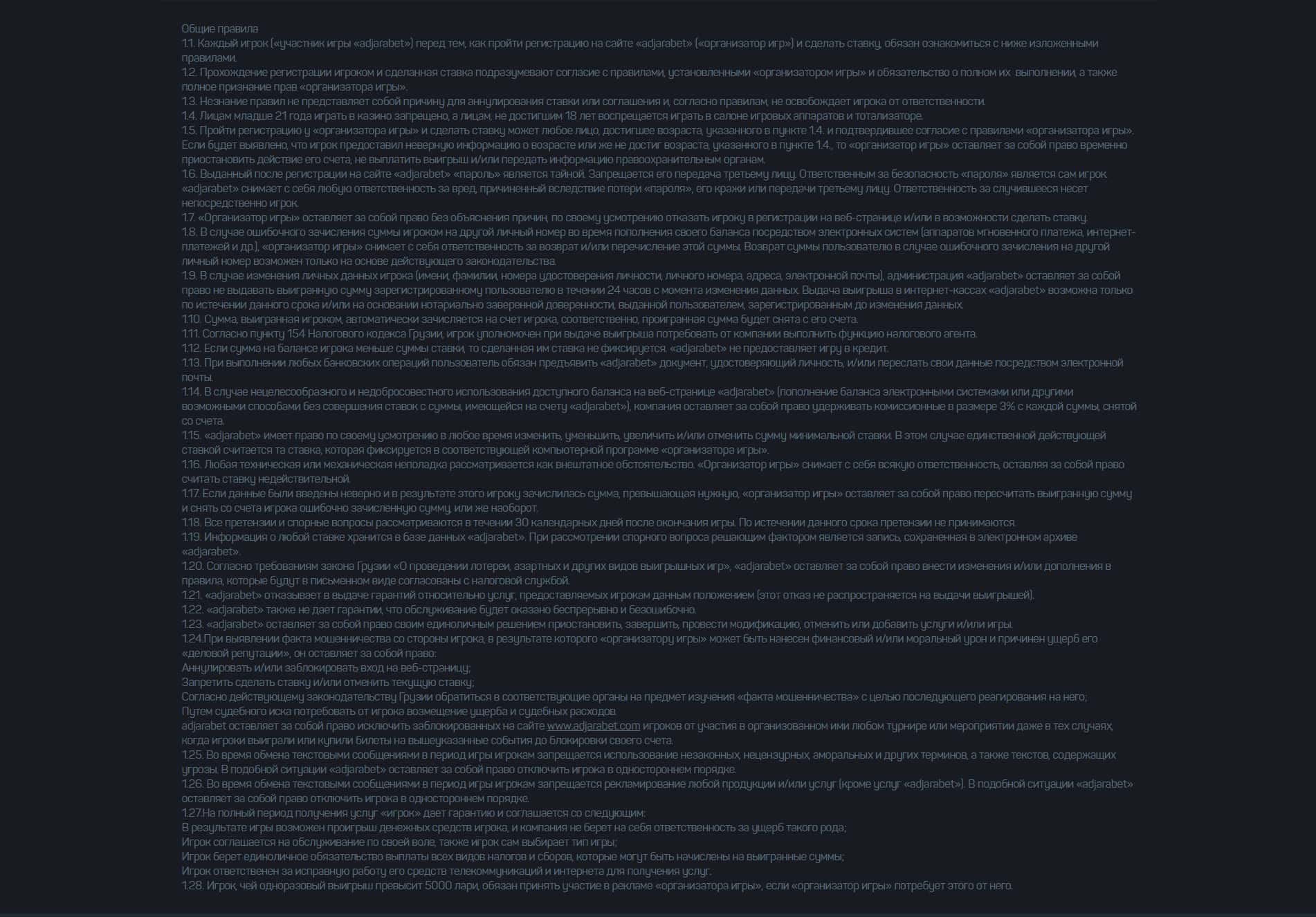 - Клиентское соглашение мошенников AdjaraBet