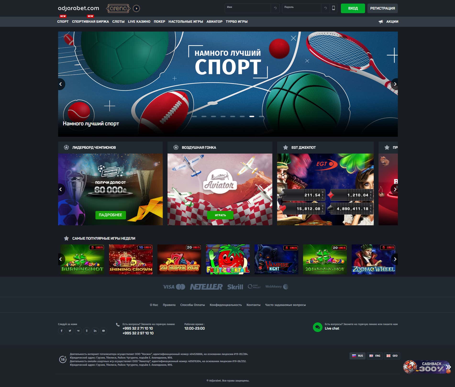 adjarabet com - официальный сайт конторы AdjaraBet