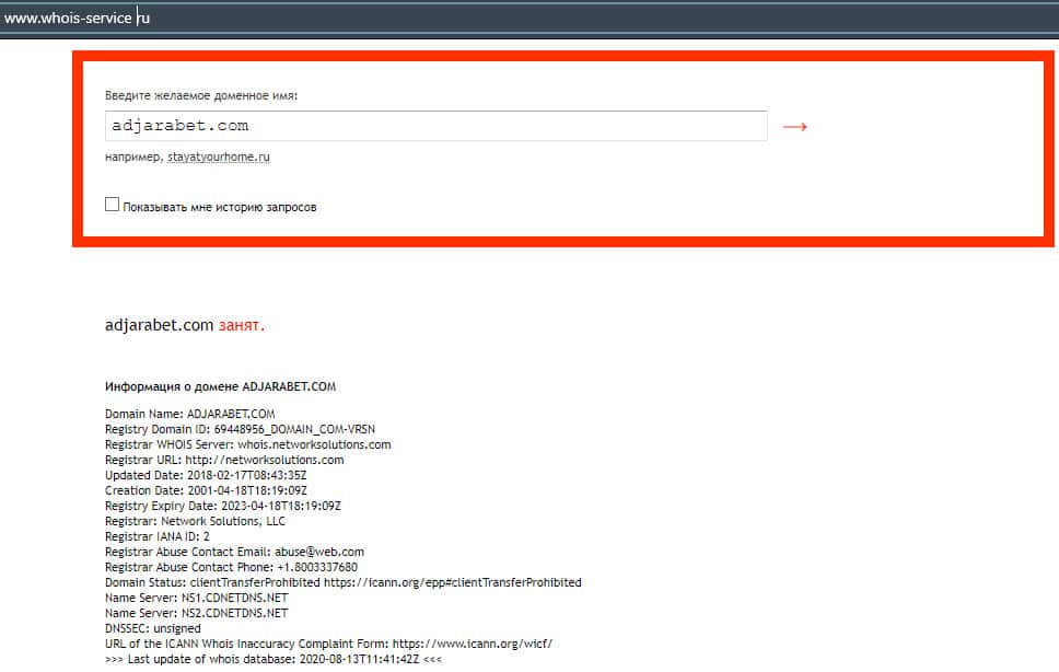 - Кто владеет доменом ресурса adjarabet com?