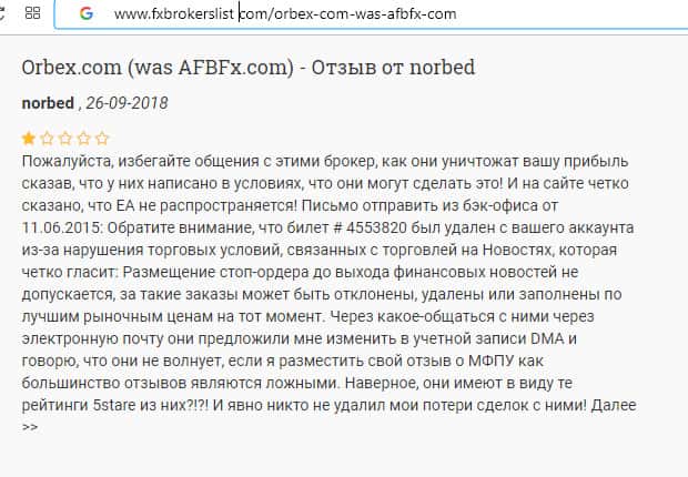 AFB FX - еще одна соскамленная шарашкина контора, которая использовала свой лохотрон в качестве сбора денег с лохов, путем предоставления липового доступа к рынку Форекс. Жулье опрокинуло довольно много людей и в некоторых отзывах указывается информация, что теперь они работают под названием Orbex.