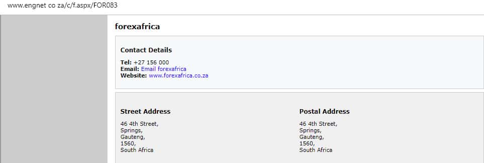 - адрес конторы 46 4th Street, Springs, Gauteng, 1560, South Africa.
