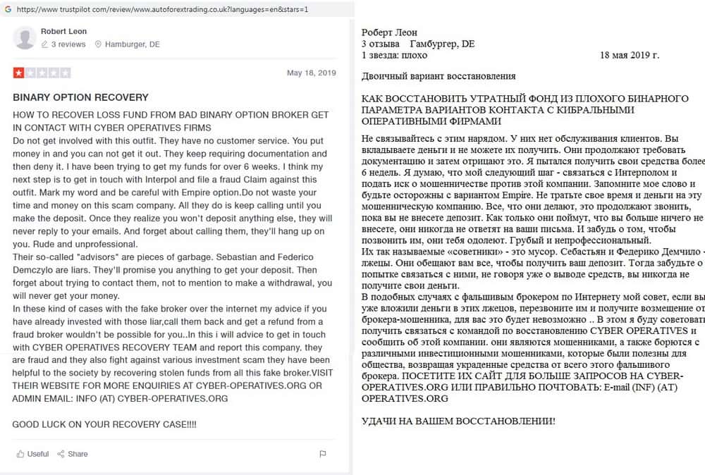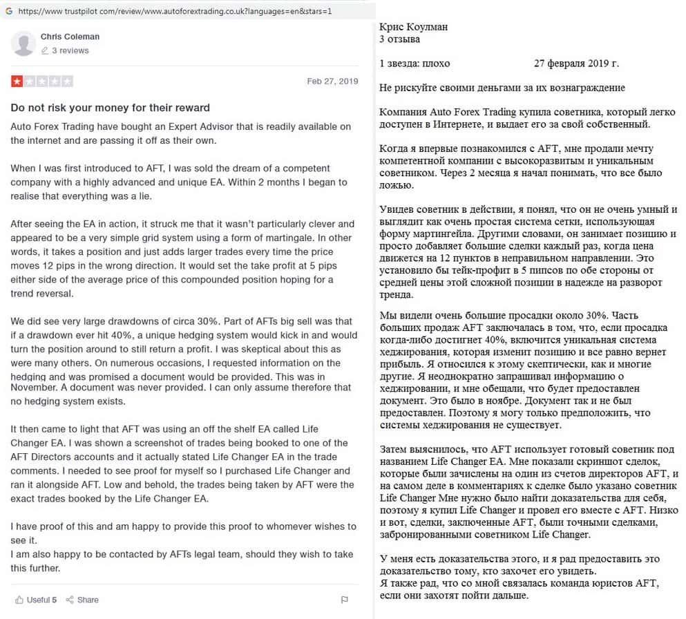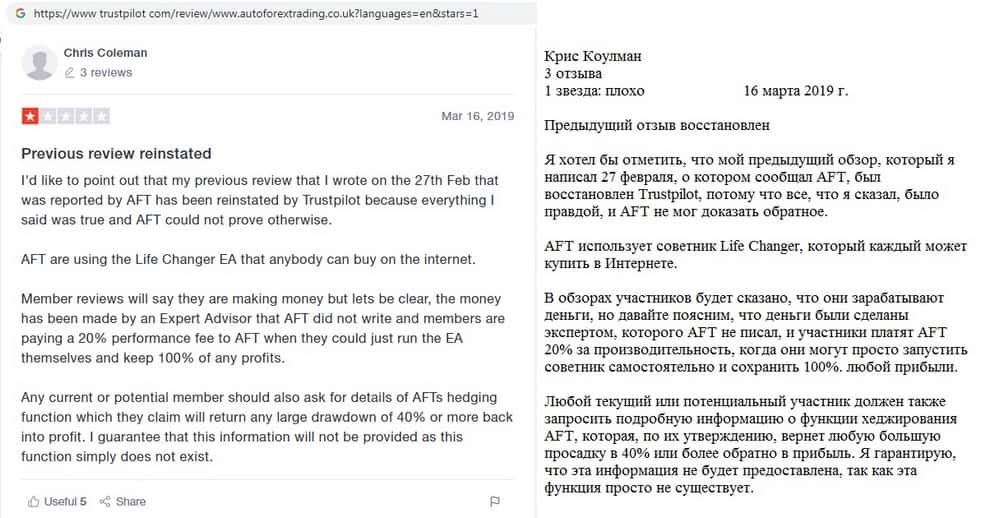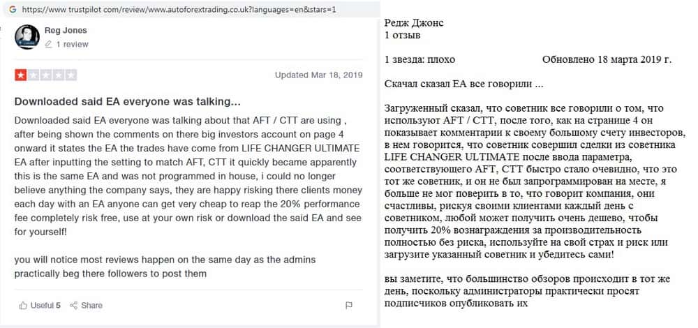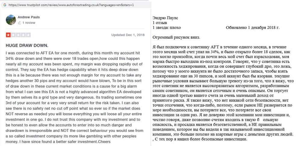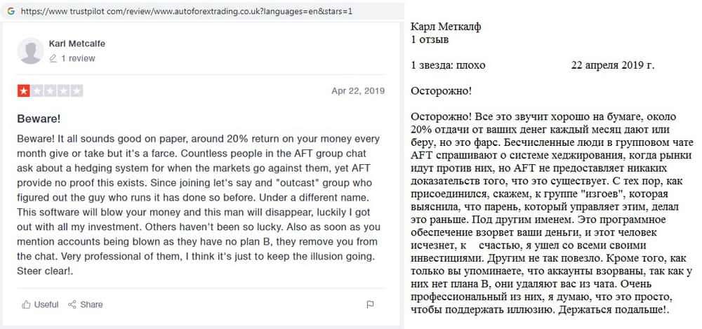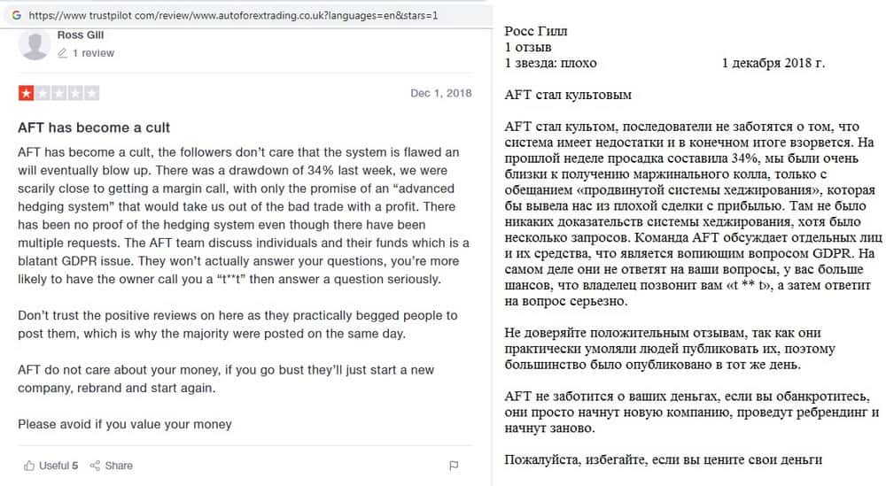 Пользователь, которого слили мошенники из АФТ, предупреждает на trustpilot com, что положительные комментарии о данной конторе проплачены и не имеют ничего общего с действительностью. На самом деле это финансовый лохотрон, где прогорают денежки наивных любителей халявы.