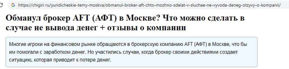 - Хорошие отзывы об AFT в сети - это ложь и обман
