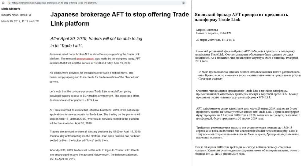 В нынешнем году лохотронщики АФТ решили повторить массовый развод своих вкладчиков, чтобы пополнить свой тугой кошелек сразу на громадную сумму. В объявлении на financefeeds com находим предупреждение о закрытии терминала Trade Link и всех трейдерских позиций.