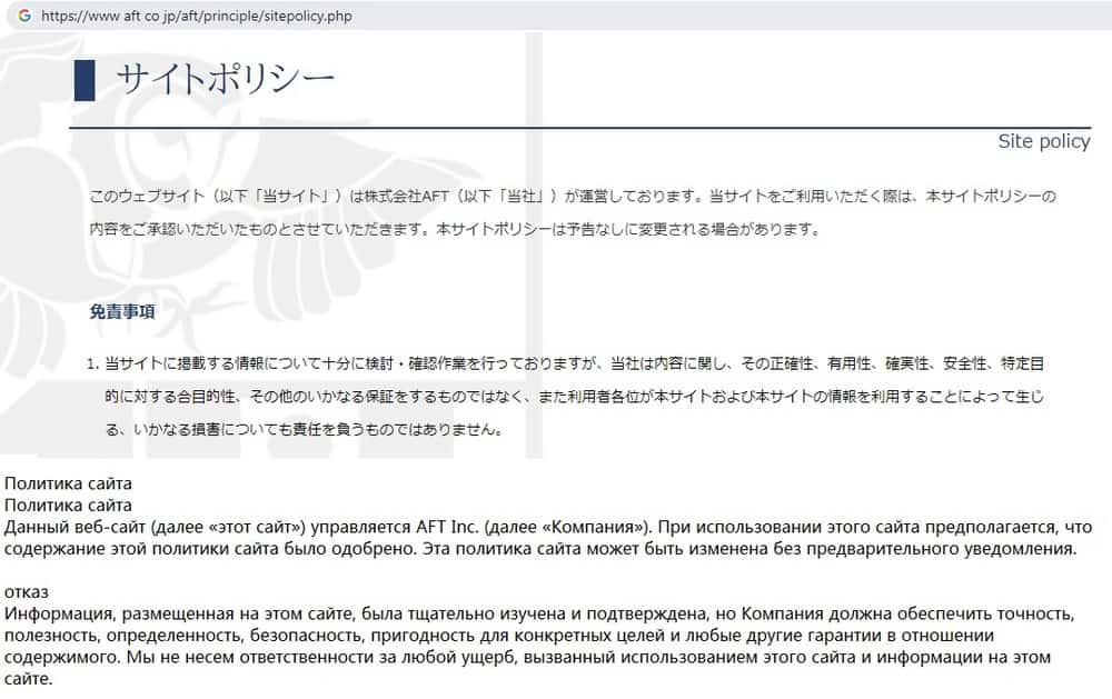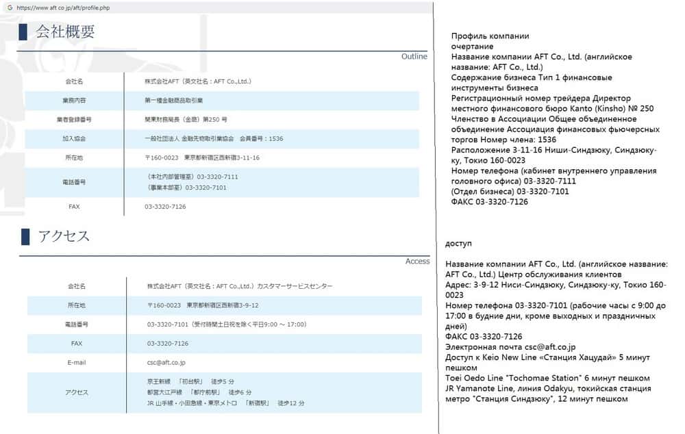 Судя по информации на сайте, мошенники АФТ находятся в Токио, хотя проверка показала, что по адресу их офиса нет. Лохотронщики не боятся выставлять свои контакты. Во-первых, ответственность они с себя сняли. Во-вторых, когда клиент уже слит, связь с жуликами перестает действовать. Контакты компании AFT: