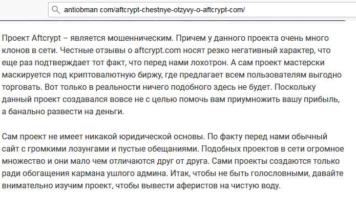 - Что думает автор статьи о шаражке АФТ Крипт?