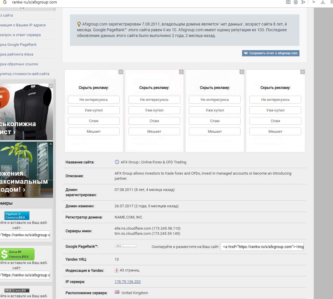 Согласно сведениям, которые нам предоставил компетентный веб-сервис wdomain ru, то ни единого упоминания в сети интернет на сегодняшнее время о липовом брокере AFX Capital нет. Можно прийти к выводу, что шарашкина компания по-тихому смылась вместе с награбленными денежками, предварительно полностью заметая за собой все следы деятельности.
