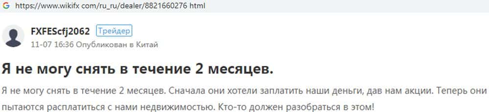 О том, что деятельность проходимцев АГМ Брокер в Азии подходит к концу, говорит увеличившийся поток жалоб. Их можно найти на ресурсе wikifx com. Один из пострадавших трейдеров пытается вернуть свои деньги уже два месяца, но вместо этого ему предлагают то несуществующие акции, то фиктивную недвижимость.