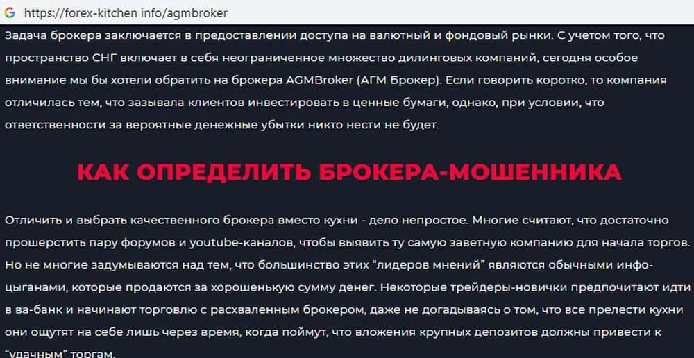Ресурс катал АГМ Брокер - фикция