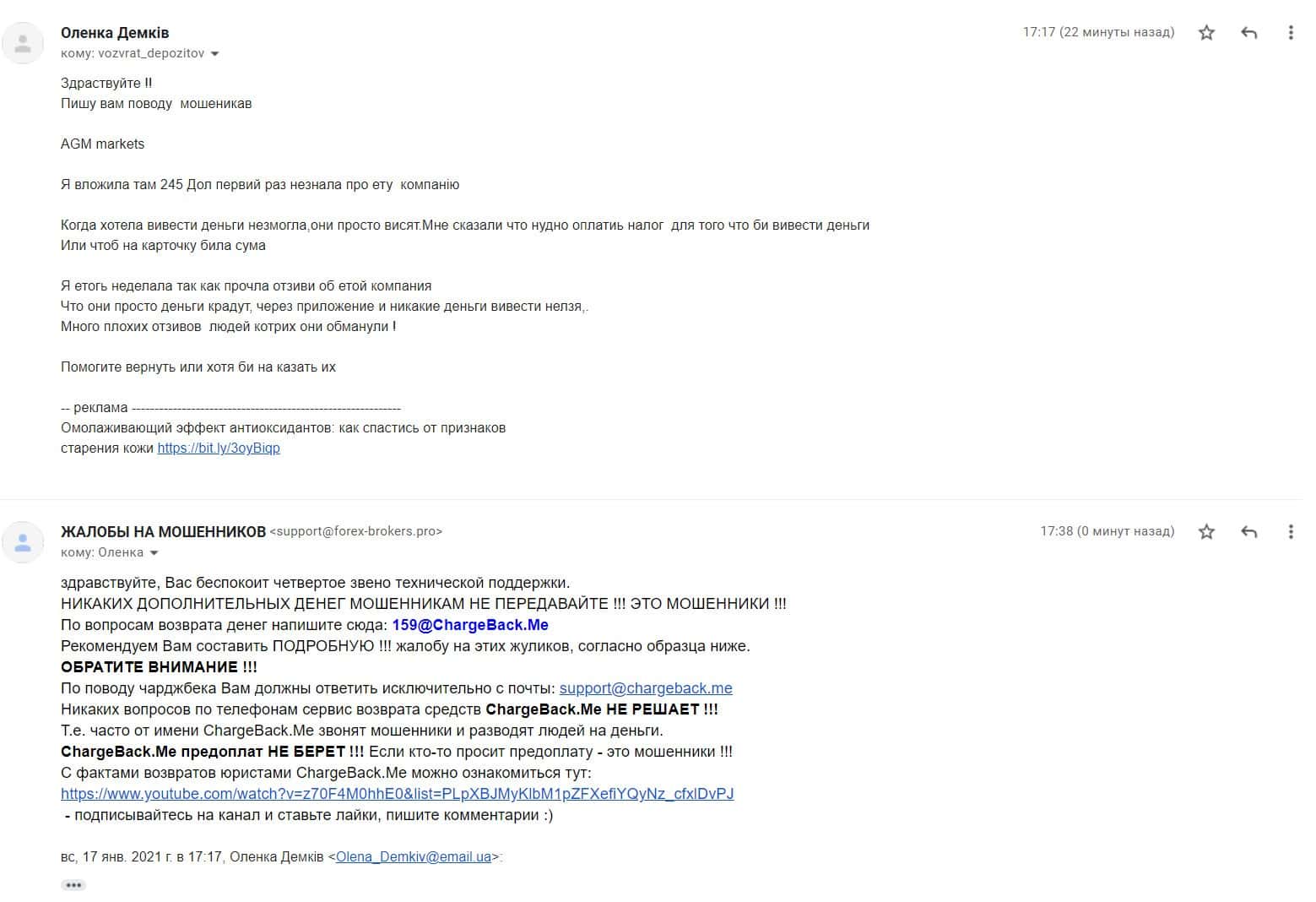 На почтовый адрес сайта по сбору информации о деятельности мошенников форекс пришла жалоба на скам-брокера АГМ Маркетс, который кинул клиента на 245 долларов США.