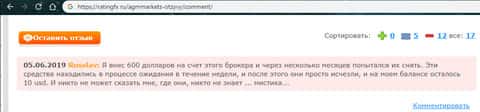 Отзыв о лохотроне АГМ Маркетс с портала ratingfx ru