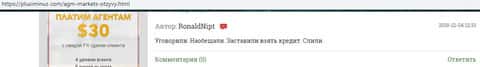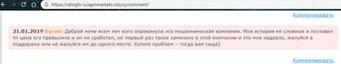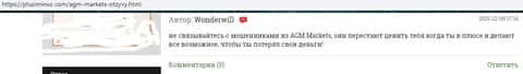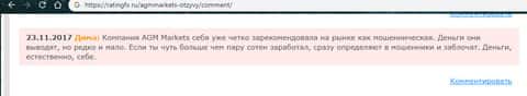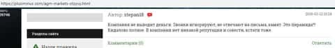 На расположенном ниже изображении вы можете прочесть еще один реальный негативный отзыв в сторону аферистов АГМ Маркетс, о которых сказал, что шулера AGM Markets попросту кидают клиентов даже в случае заработка ими средств под предлогом мошенничества. Хотя по сути это типичная причина, по которой жулики АГМ Маркетс опрокидывают пользователей сети.