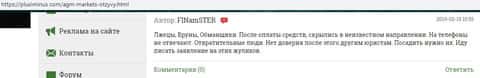 На изображении, расположенном ниже, вы можете увидеть и прочесть очередной реальный негативный комментарий в сторону лохотрона АГМ Маркетс, который не выводит денежные средства еще одному наивному пользователю сети интернет которого угораздило попасть в данную мошенническую контору, в связи с чем он и оставил свой отзыв на сайте plusiminus com.