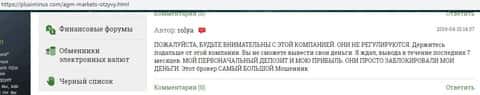 Еще один отзыв о шулерах AGM Markets с портала плюсиминус ком