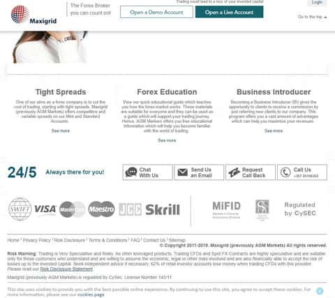 А завершается сайт у мошенников АГМ Маркетс уже не так радужно, а именно ссылками на различные разделы сайта аферистов и предупреждением о рисках, в котором шулера AGM Markets помалкивают о грандиозной прибыли, а уже говорят о том, что торговля форекс пахнет сливом денег. На изображении ниже вы можете увидеть окончание сайта мошенников АГМ Маркетс.