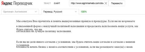Условия сотрудничества с мошенниками AGM Markets
