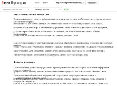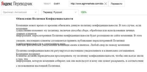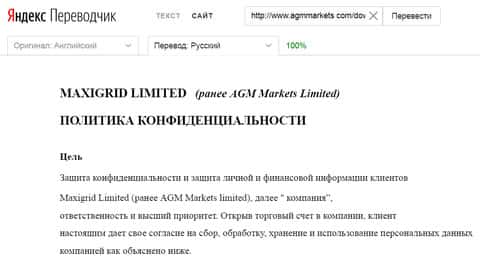 Политика конфиденциальности лохотрона АГМ Маркетс