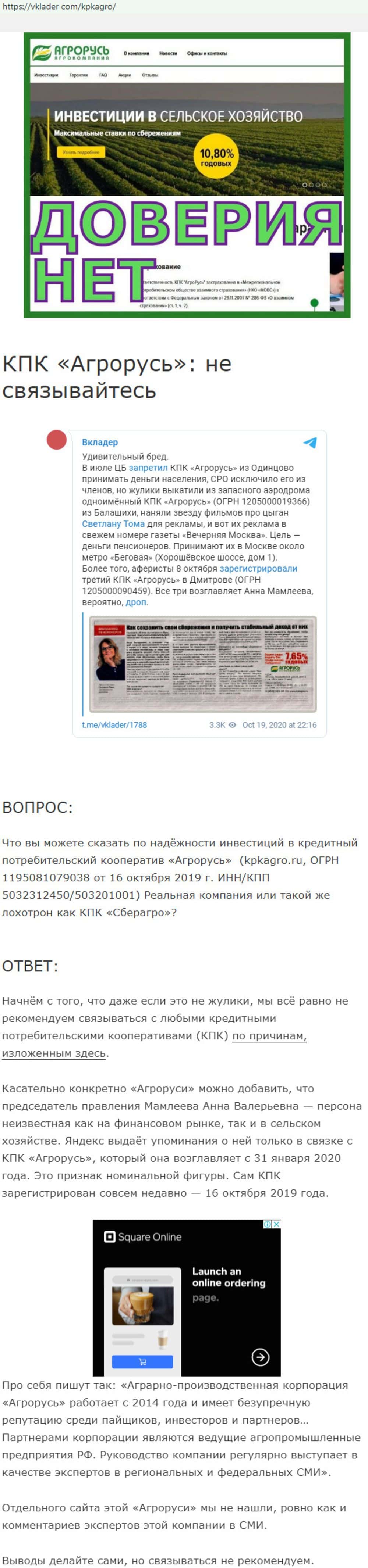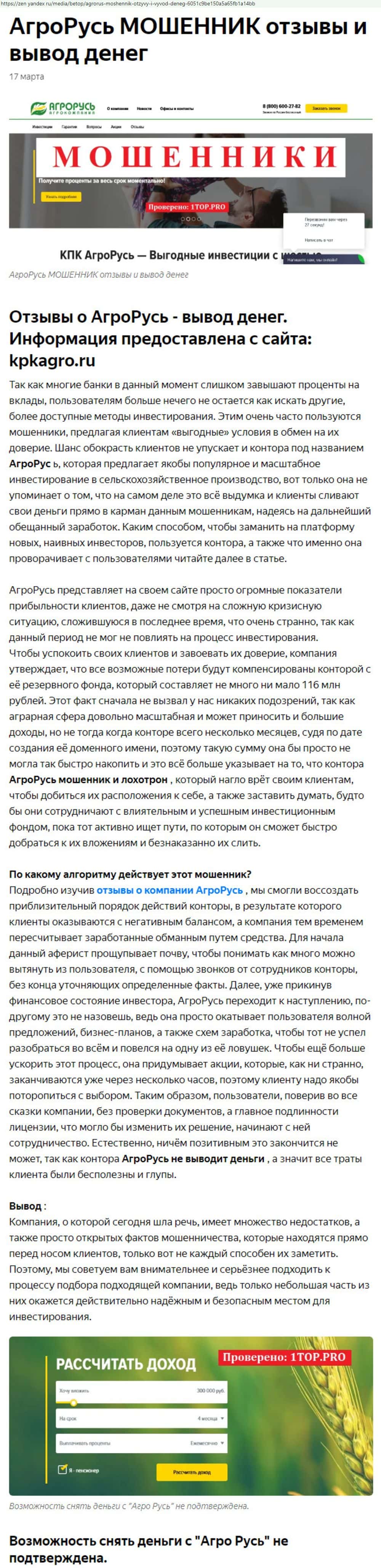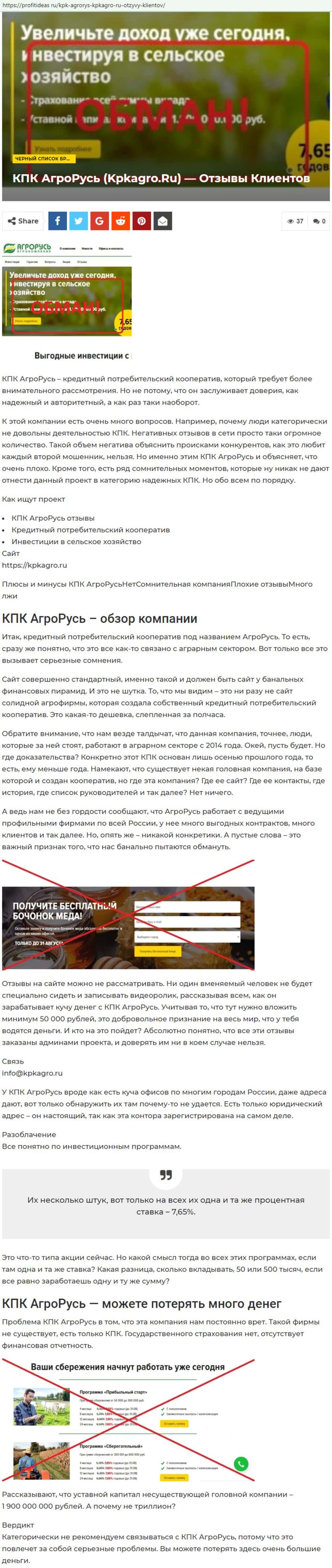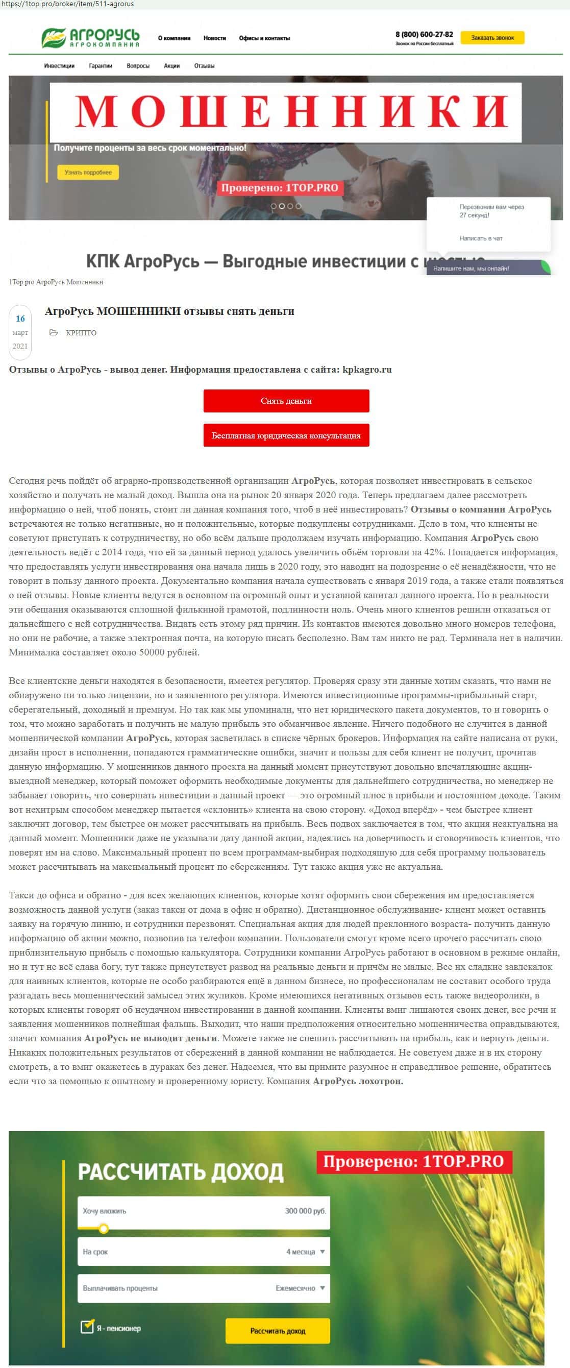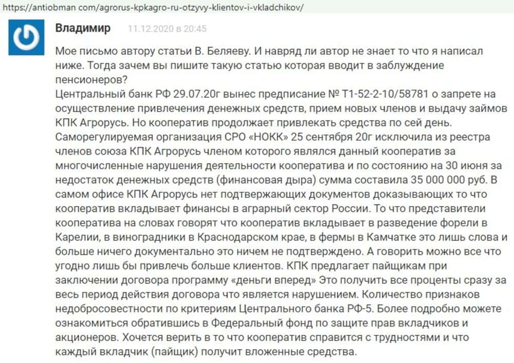 - Обзоры других сайтов на лохотронщину АгроРусь