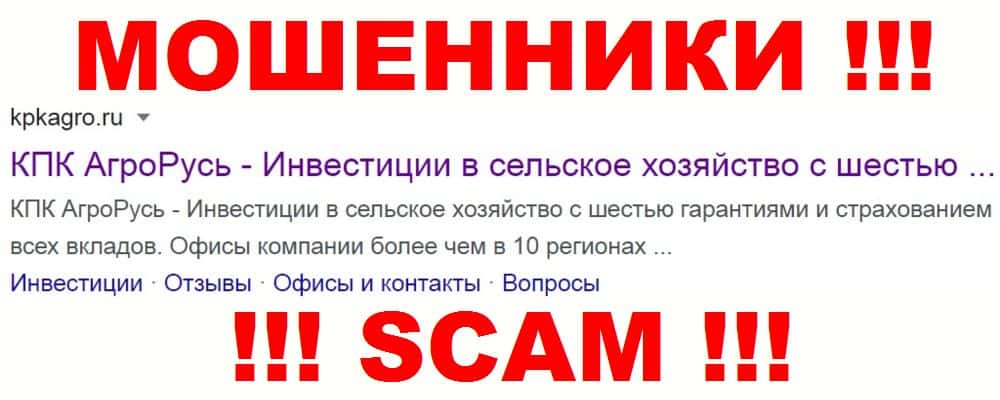 Как предупреждают специализированные ресурсы, с шарлатанами KPKAgro Ru ни в коем случае нельзя связываться, так как это может привести их к необратимой потере крупных сумм.