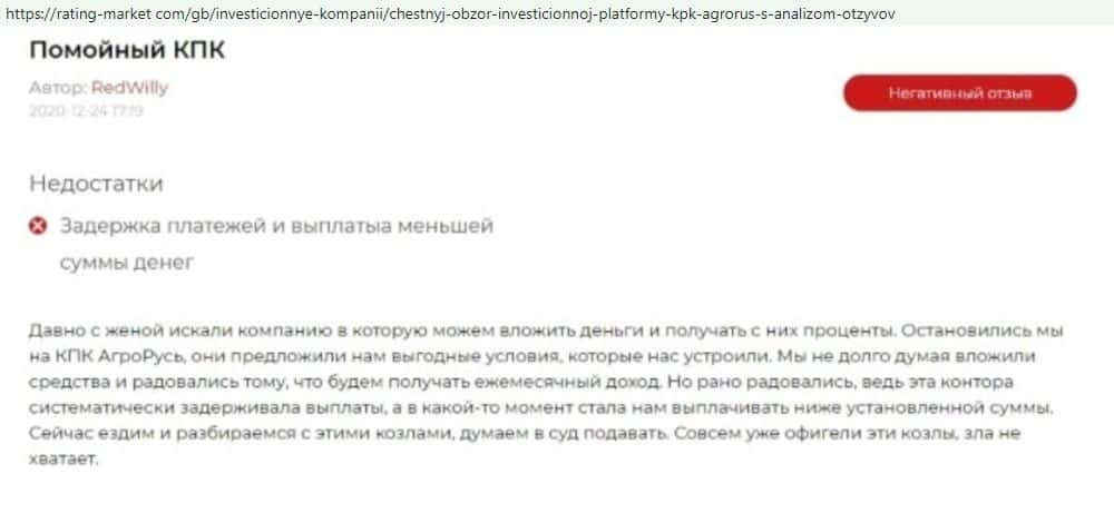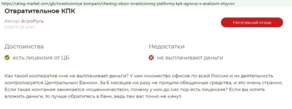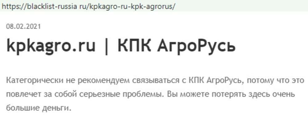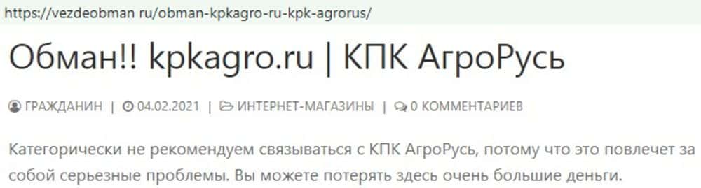 Многие ресурсы обратили внимание на то, что в сети полно негативных отзывов на кидал KPKAgro Ru, хотя они и пытаются скрыть это за проплаченными обзорами и лживыми отзывами.