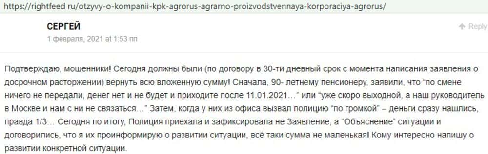 Аферисты АгроРусь, по мнению пользователей действуют незаконно