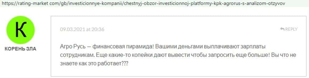 Сразу же в недопроекте АгроРусь распознали финансовую пирамиду интернет-пользователи, которые видят, что данный ресурс является ничем иным, как обычным хайпом.
