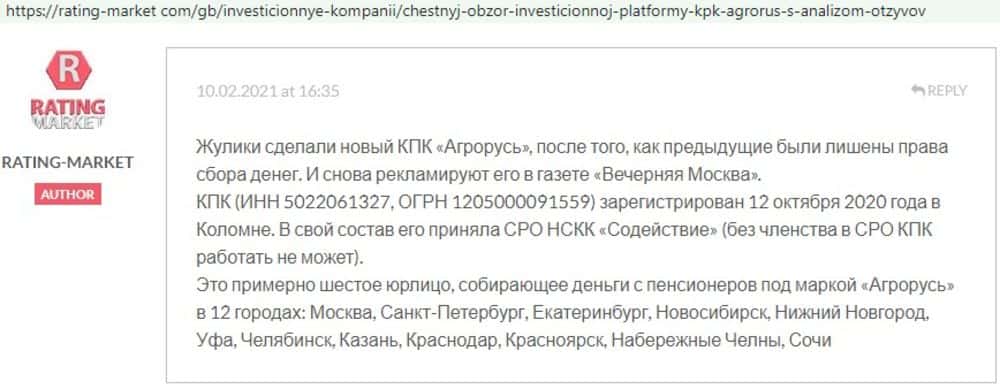 Как известно, лица, которые стоят за созданием фиктивного потребительского кооператива KPKAgro Ru уже замечались в подобных действиях, от которых пострадало множество людей.