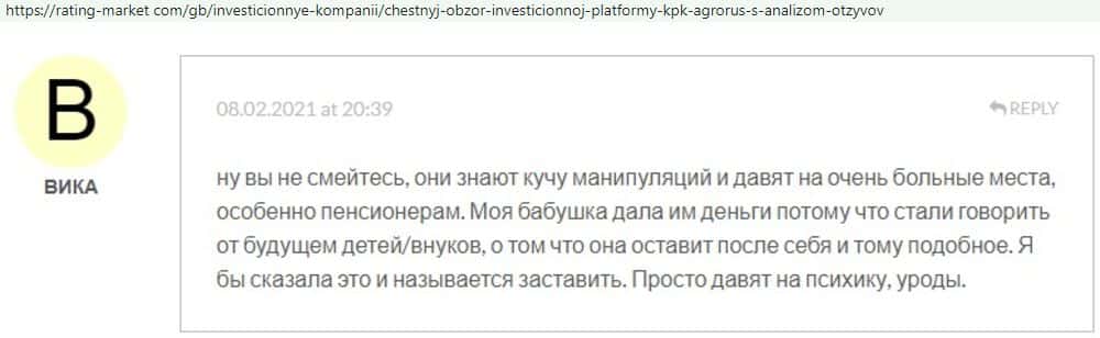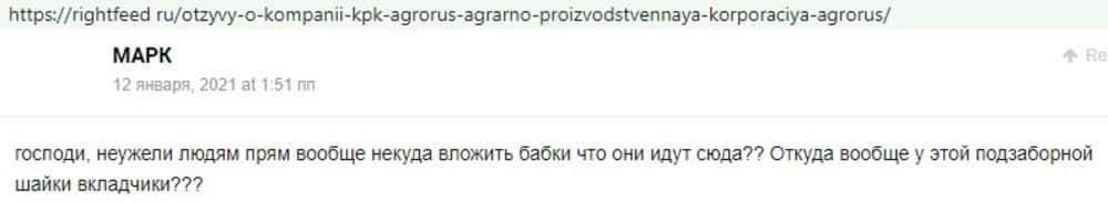 - Отзывы пользователей сети на шарлатанство KPKAgro Ru