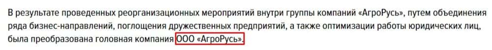 Хапуги АгроРусь утверждают, что сделали преобразование своей недоорганизации и теперь они якобы являются конторой, которая юридически оформлена как ООО "АгроРусь".