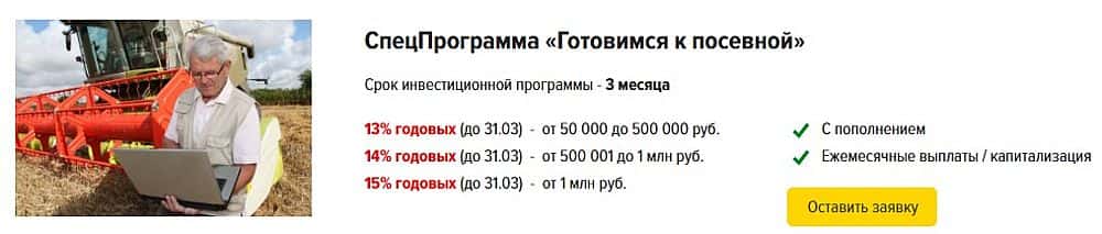 Их компания "Готовимся к посевной" - чистый фарс, как можно на сезонной кампании обещать годовую прибыль, выше даже банковских депозитных процентов. Это полная афера.