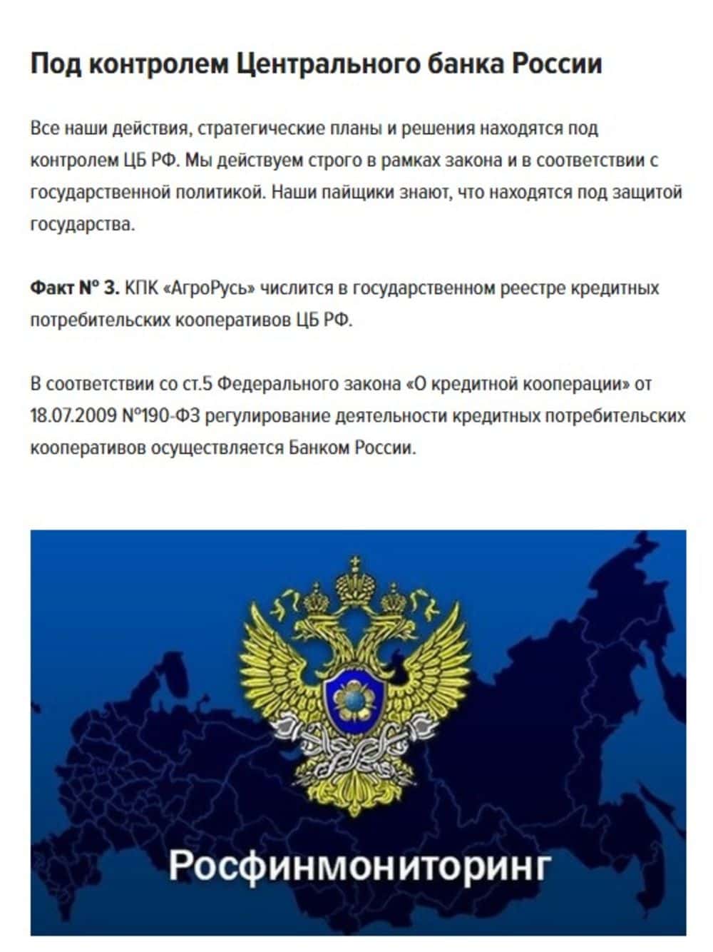 Посмотрите следующее видео, дабы убедиться, что шарлатанство АгроРусь - это типичный интернет-лохотрон, который покрывается госаферизмом под названием Центральный Банк РФ.