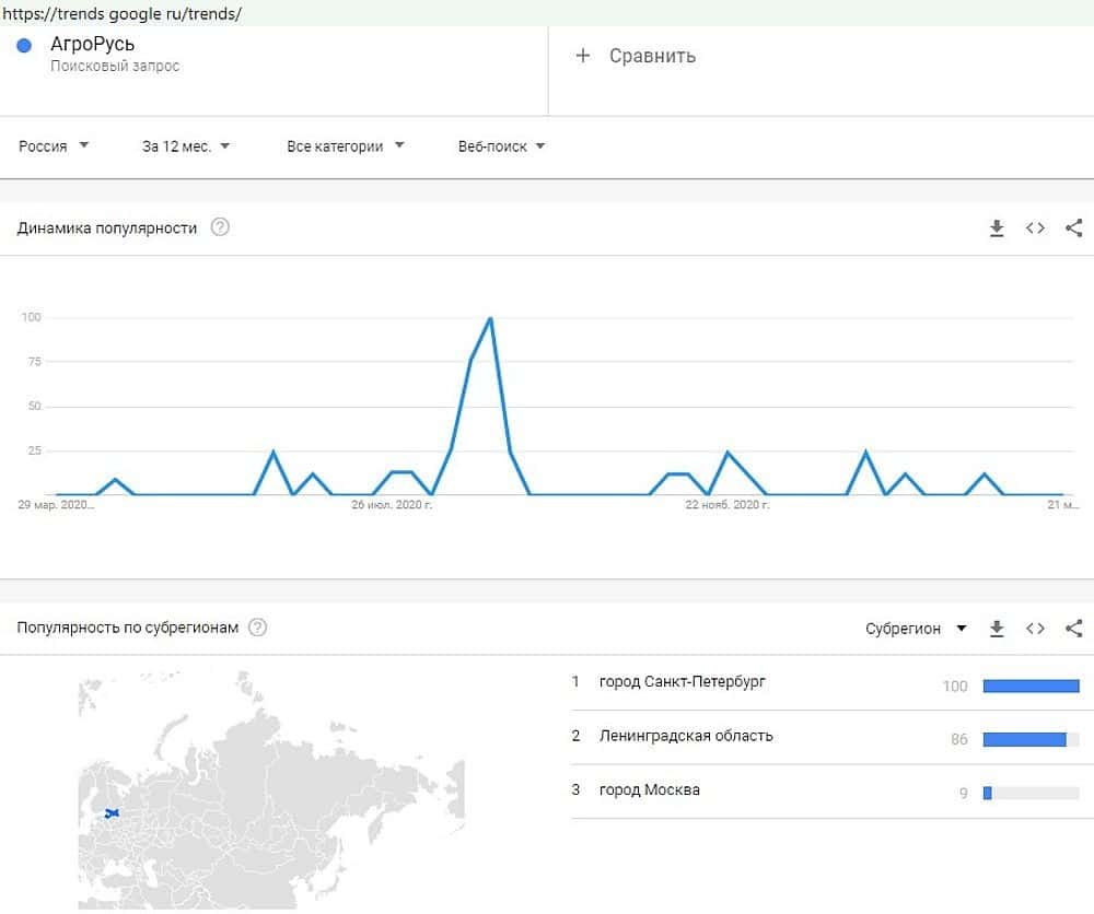 - Насколько популярны разводилы АгроРусь среди пользователей Гугл?