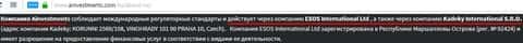 Согласно информации на официальном сайте конторы Ainvestments, данная компания ведет деятельность через две другие конторы, а именно: ESOS International LTD, которая зарегистрирована на Маршалловых островах, и Kadeky International S.R.O. с регистрацией в Чехии. Получается у кухни Ainvestments два хозяина и к кому бежать в случае преступных действий непонятно. Сама компания не имеет не регистрации, ни прописки, ни лицензии, поэтому одно из этих контор является компанией-владельцем ДЦ АИнвестменс. Жулики описывают, что они работают согласно разрешения от оффшорных регуляторов, но никто не упоминает, где заканчивается юридическая сила документа. Поэтому в такие мутные темы лучше не лезть. Как бы не была закрученная схема итог один - они не отдадут вам деньги.